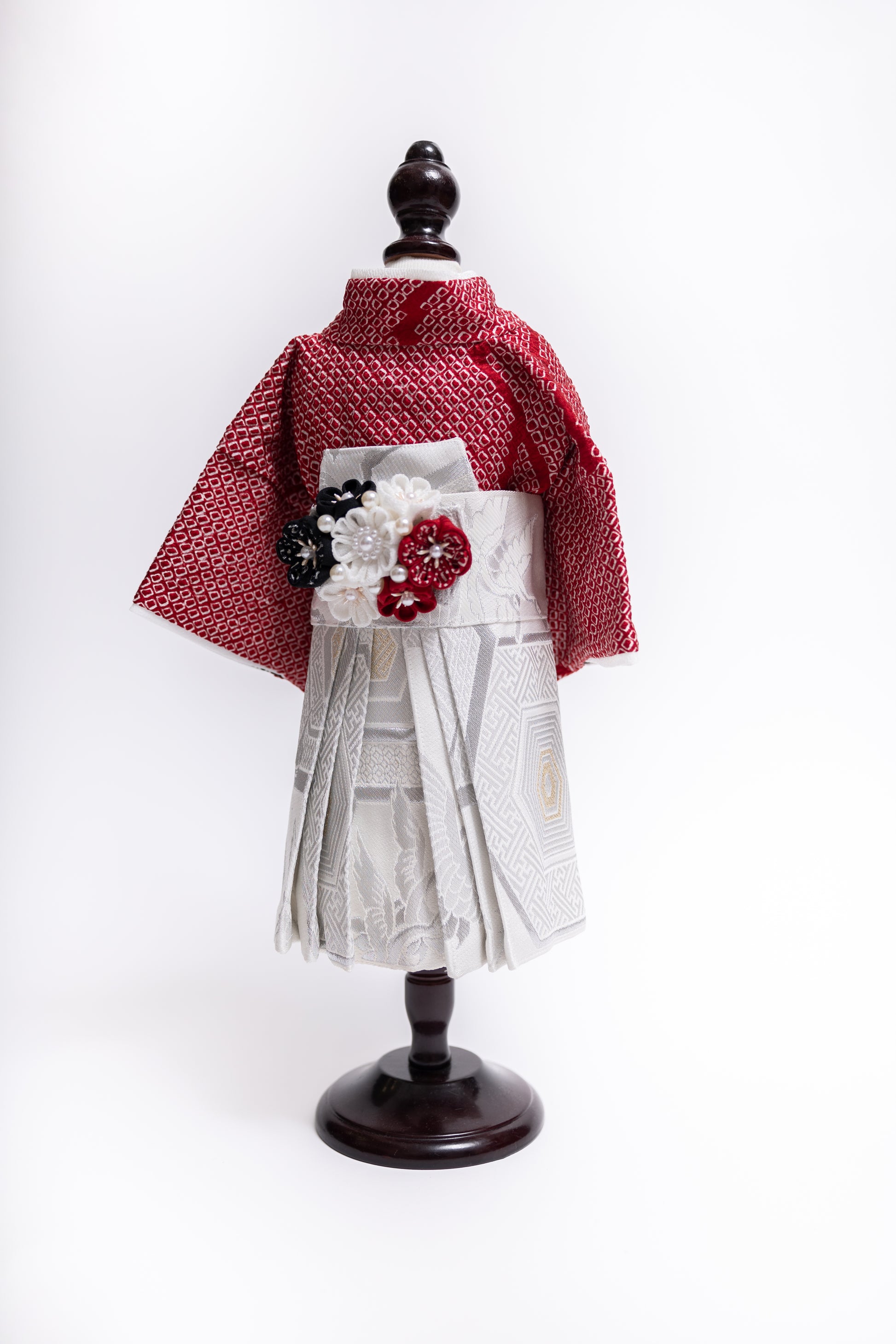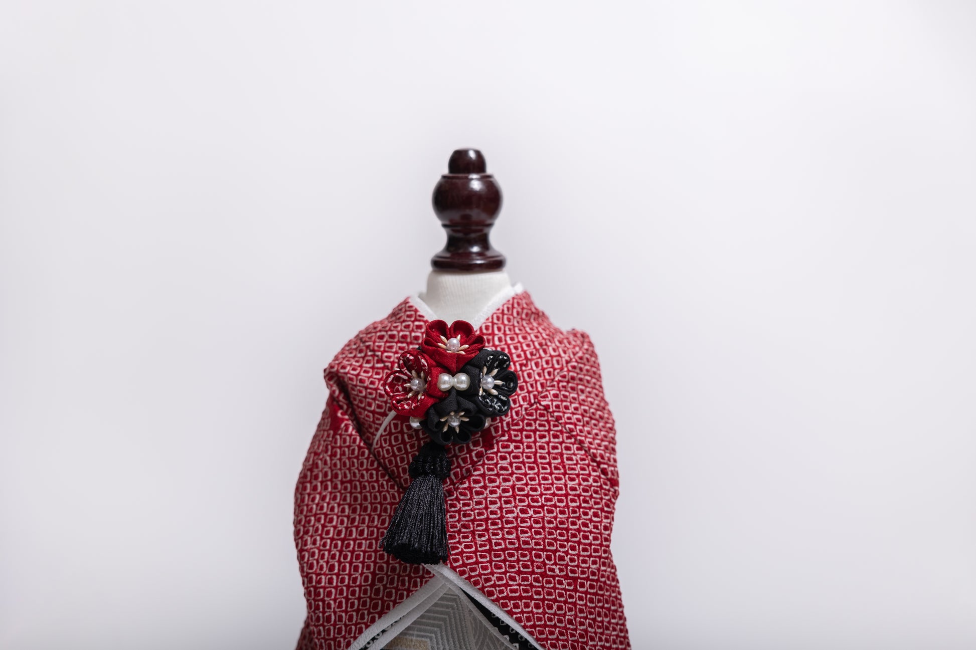 わんちゃん用 リバーシブル着物、帯、えり飾り3点セット